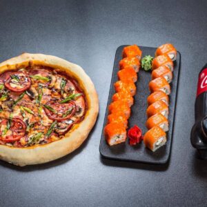 Ассорти горячего, запеченного и холодных роллов в одном наборе. В состав набора входят роллы с лососем, тунцом, креветкой и крабом. 4 вида, 32 шт.2150 ₽