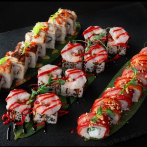 Мини ролл с гребешком и добавлением пикантного соуса «спайс»