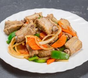 13 Свиные ребрышки с овощами в кисло-сладком соусе
