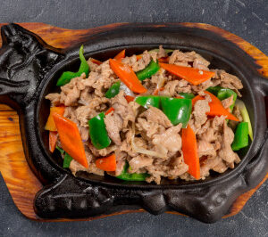 Говядина, болгарский перец, лук соевый соус кунжутное масло