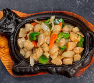 Морской гребешок, болгарский перец, лук, морковь, кунжутное масло. 500гр
